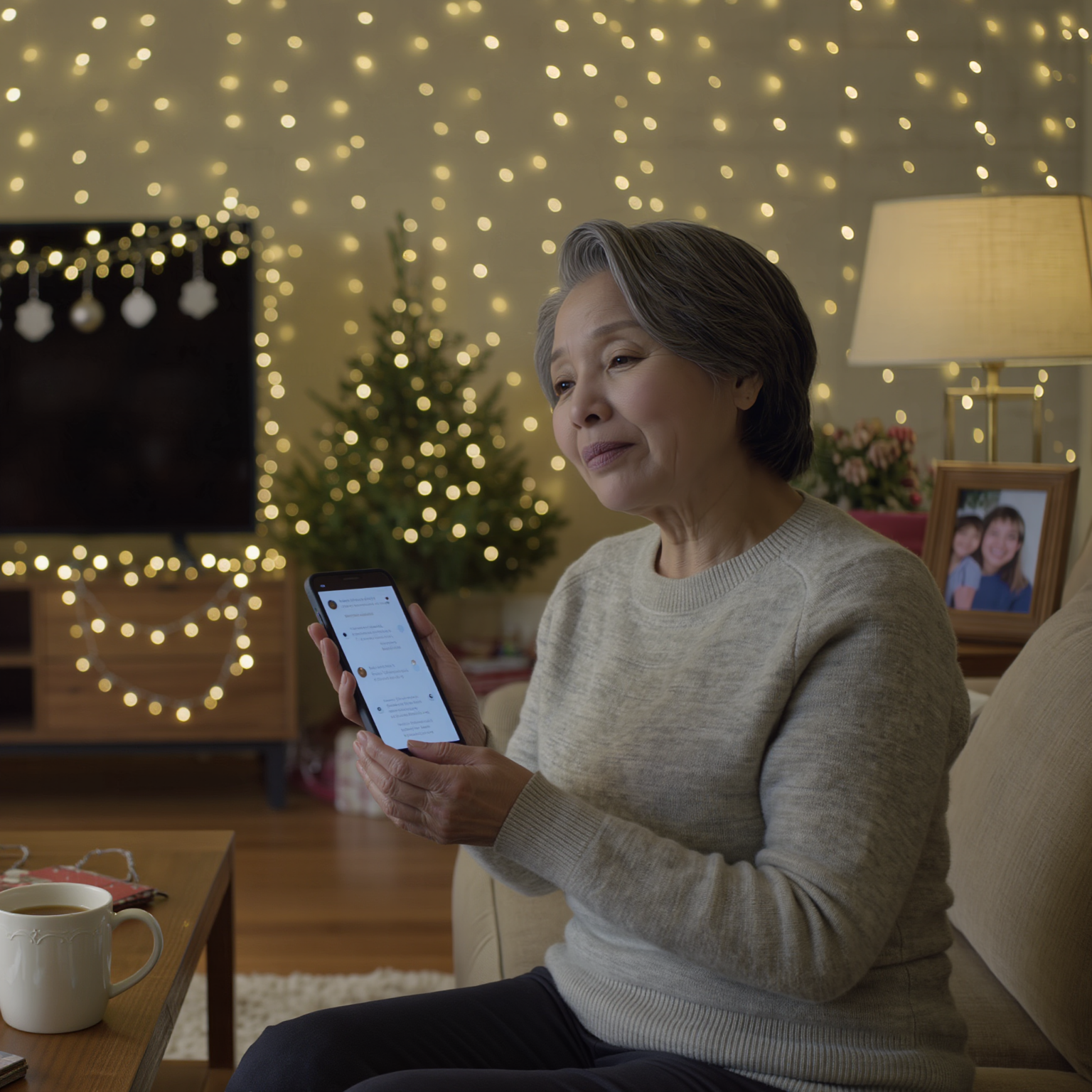 Wiadomość tekstowa informująca mnie, że nie jestem mile widziany na święta Bożego Narodzenia.