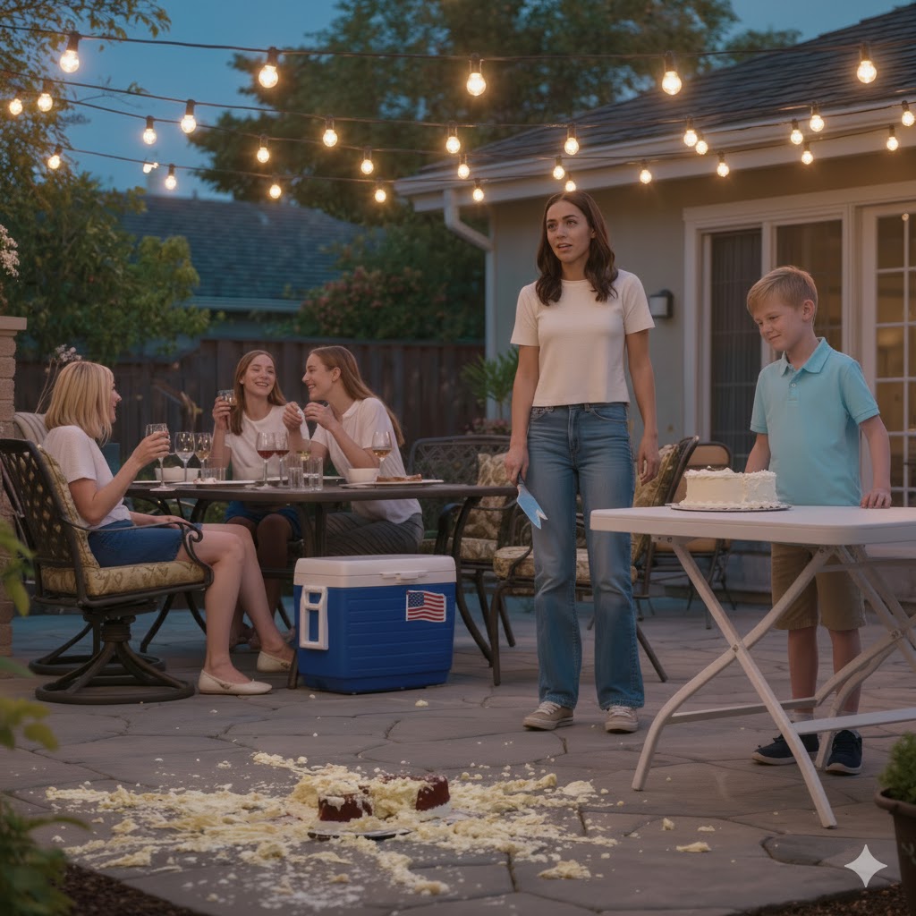 Gdy słońce zaszło, lampki na podwórku rozbłysły jaśniej. Powietrze zrobiło się chłodniejsze, grill zniknął, a ludzie po prostu siedzieli i pili. Śmiech zaczął się zmieniać. Stał się głośniejszy i ostrzejszy. Nie był to radosny śmiech. To był śmiech, który potrzebuje celu.