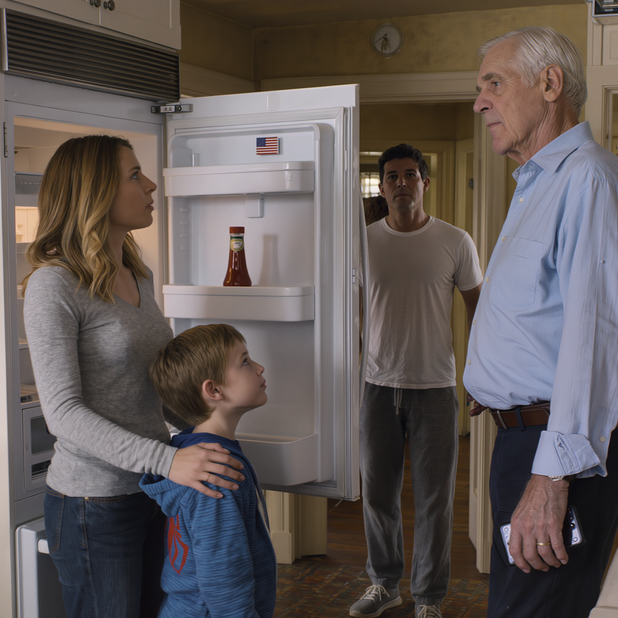 Tata przyjechał po mojego syna na weekend, otworzył lodówkę i zobaczył, że jest całkowicie pusta. Zapytał: „Zarabiasz trzy tysiące miesięcznie, więc dlaczego mój wnuk jest głodny?”. Zanim zdążyłam odpowiedzieć, mój mąż z dumą oznajmił: „Bo całą pensję oddaję mojej matce”. Wtedy mój ojciec po cichu zdjął kurtkę, zarzucił mi ją na ramiona i wypowiedział jedno zdanie, które wszystko zmieniło.