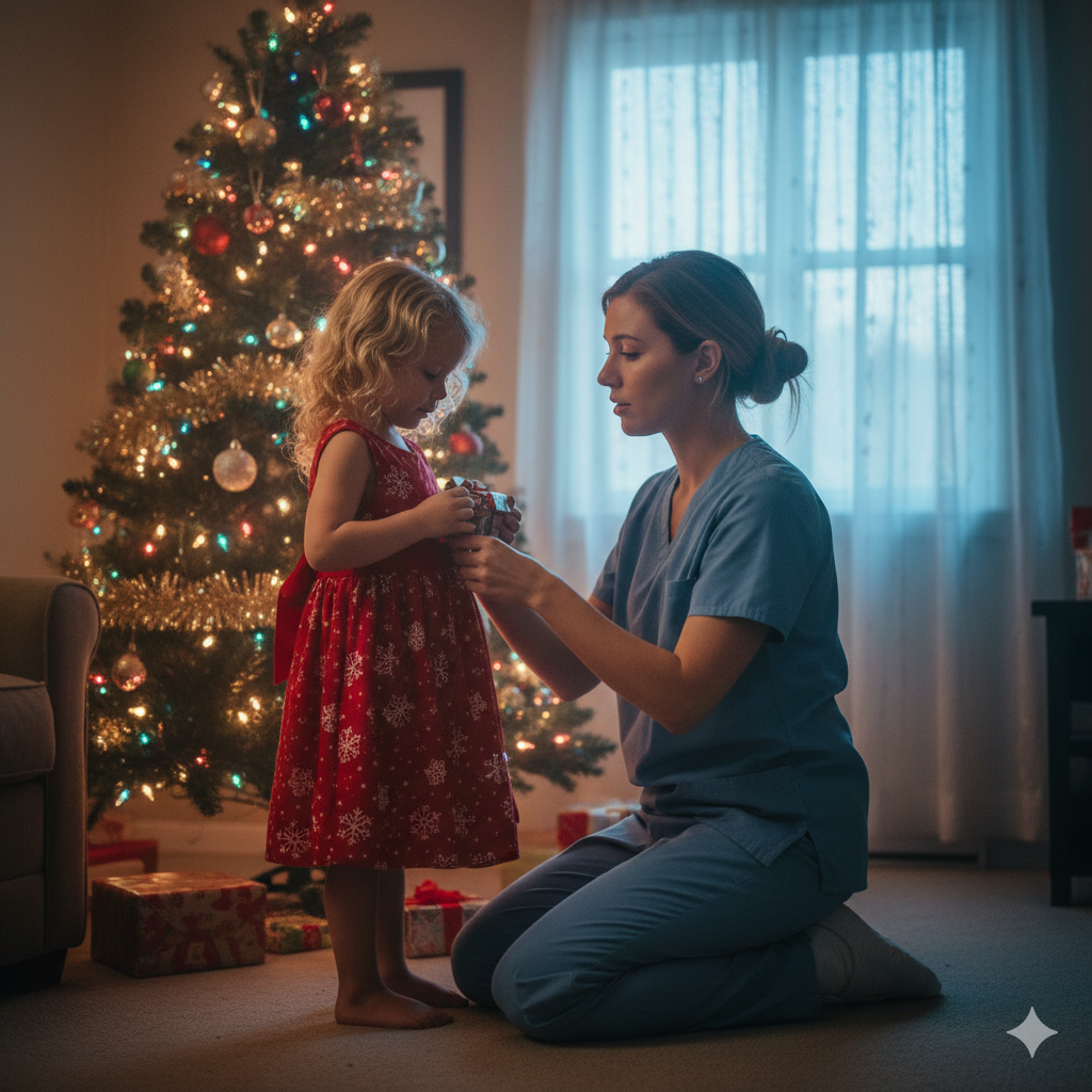 Zadzwoniłem do mamy trzy tygodnie wcześniej. „Mamo, potrzebuję ogromnej przysługi. Potrzebują mnie do pracy w święta. Czy ty i tata moglibyście zabrać Lily na jeden dzień? Odwiozę ją o 6:30 rano i odbiorę około północy”.