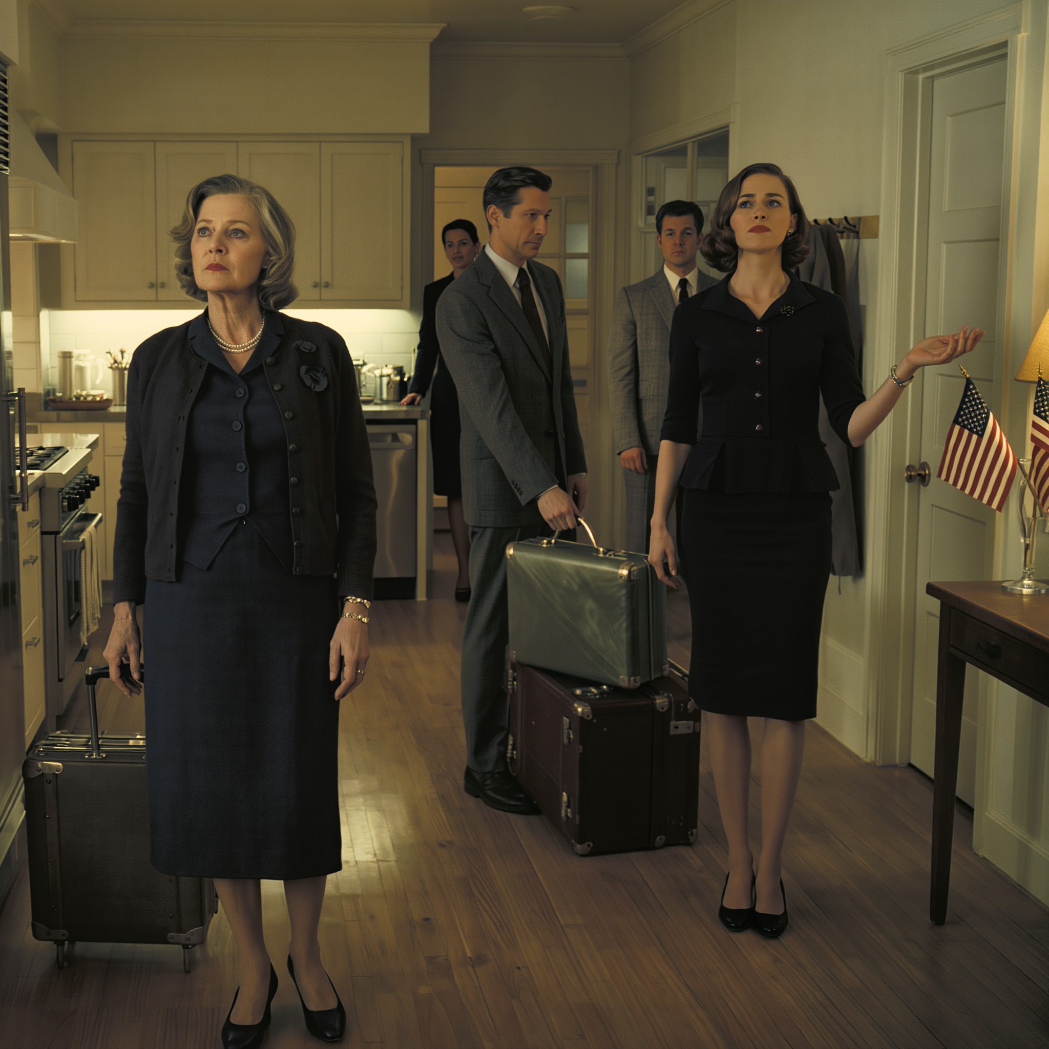 Cynthia stała tam ze skrzyżowanymi ramionami, wciąż ubrana w czarną sukienkę, ale pozbywając się wszelkich oznak żałoby. Za nią David poruszył się niespokojnie.