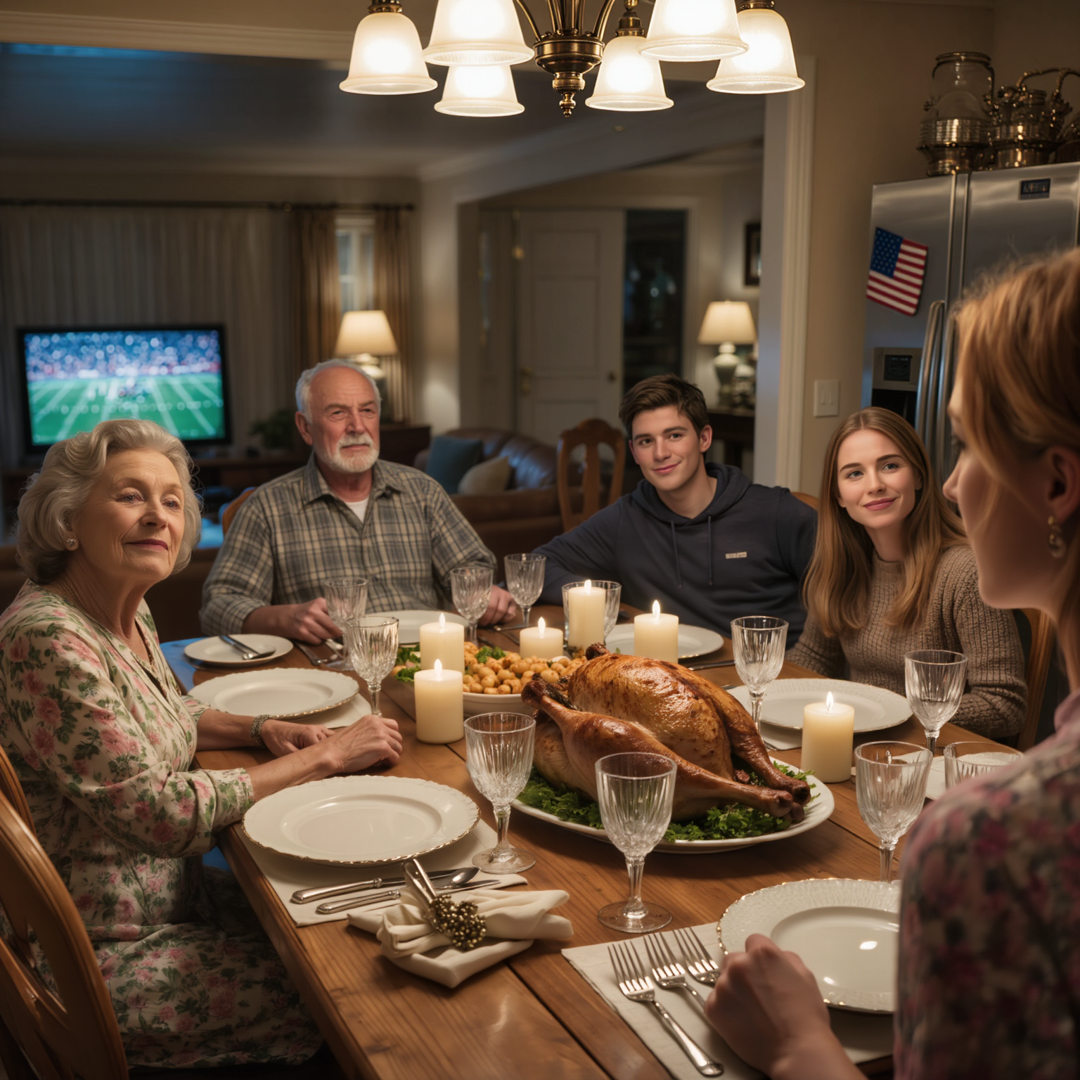 Święto Dziękczynienia zawsze miało w domu mojej mamy tę znajomą, słodkawą atmosferę, którą otulała niczym obrus. Ciepłe oświetlenie, mecz piłki nożnej w tle, ludzie rozmawiający między sobą, jakbyśmy byli sobie bliscy. Weszłam, niosąc kupione w sklepie ciasto i z ostrożną nadzieją, próbując uwierzyć, że wreszcie może być normalnie.