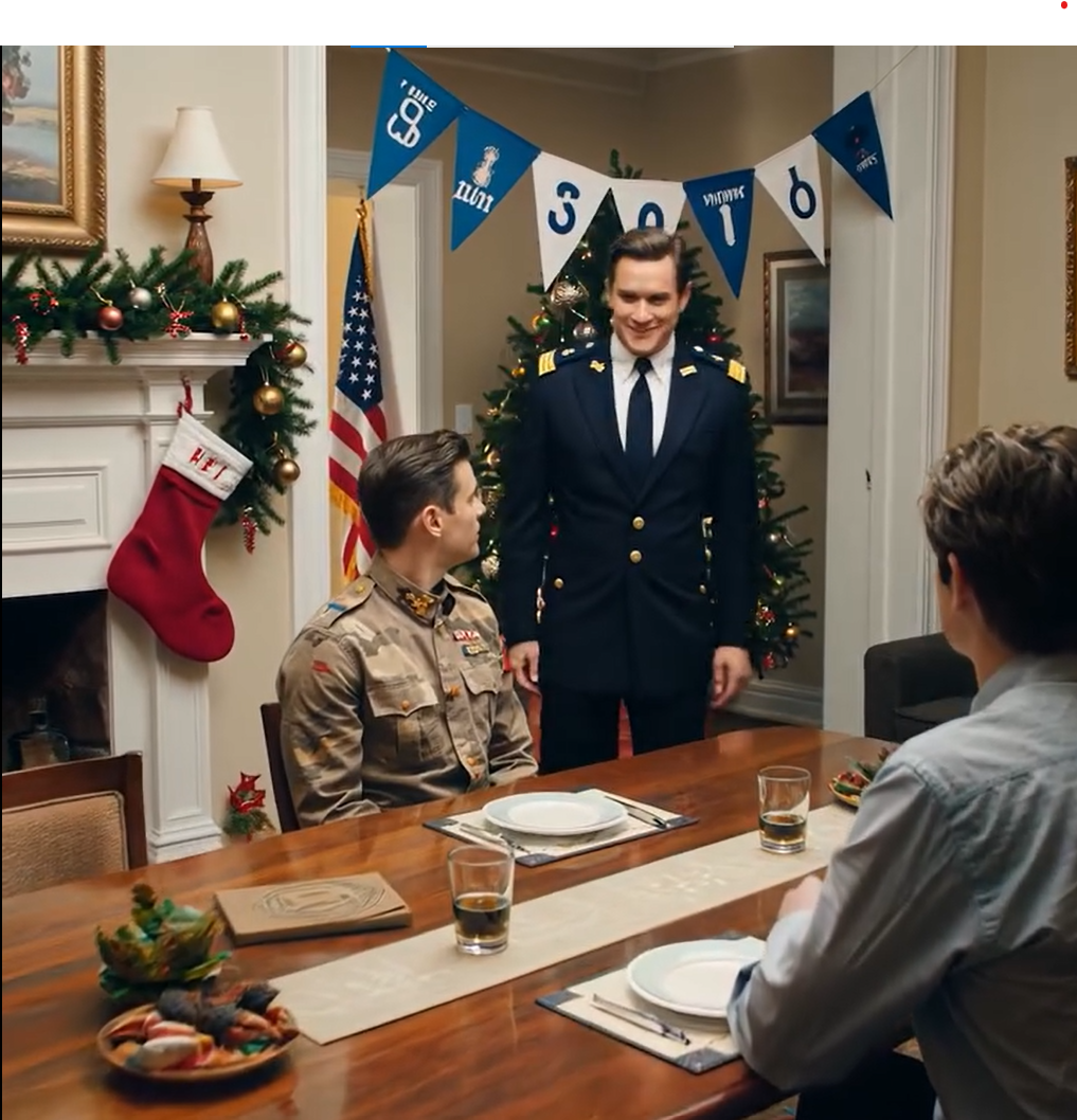 Brandon, zaskoczony, ale chętny do występu, zerwał się na równe nogi. „Kapitanie!” – zagrzmiał, a w jego głosie słychać było udawane koleżeństwo. „Cieszę się, że udało ci się przyjść. Mamo, tato, to mój dowódca, kapitan Miller”.