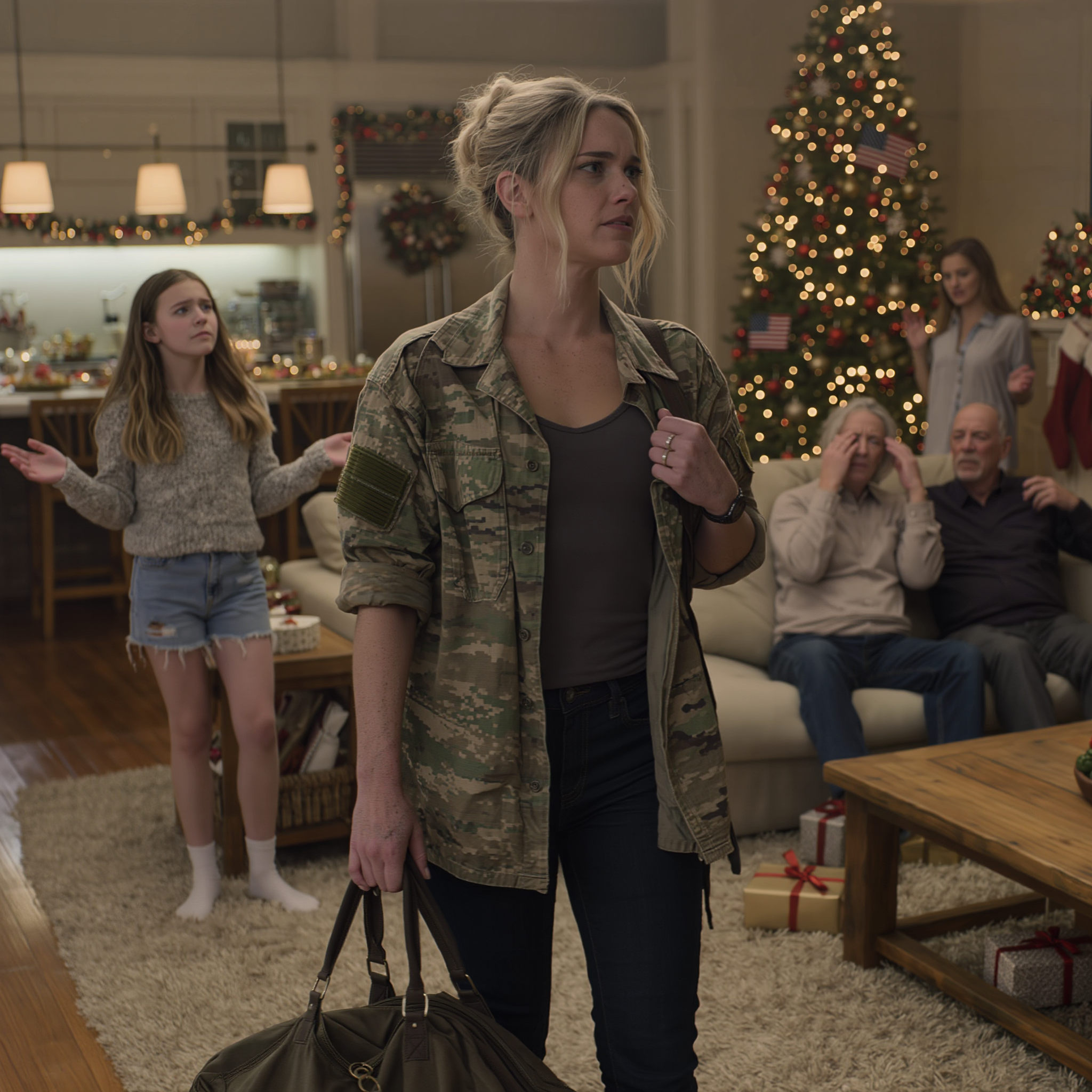 Pierwszą rzeczą, jaką zauważyłem, wchodząc do kuchni rodziców, nie był zapach cynamonu ani migotanie choinki w salonie. To był mały magnes z amerykańską flagą na lodówce, ten, który mój tata dostał lata temu w szpitalu dla weteranów. Trzymał on krzywo zdjęcie mojej czternastoletniej córki, Emmy, w znoszonym, już za małym stroju piłkarskim.