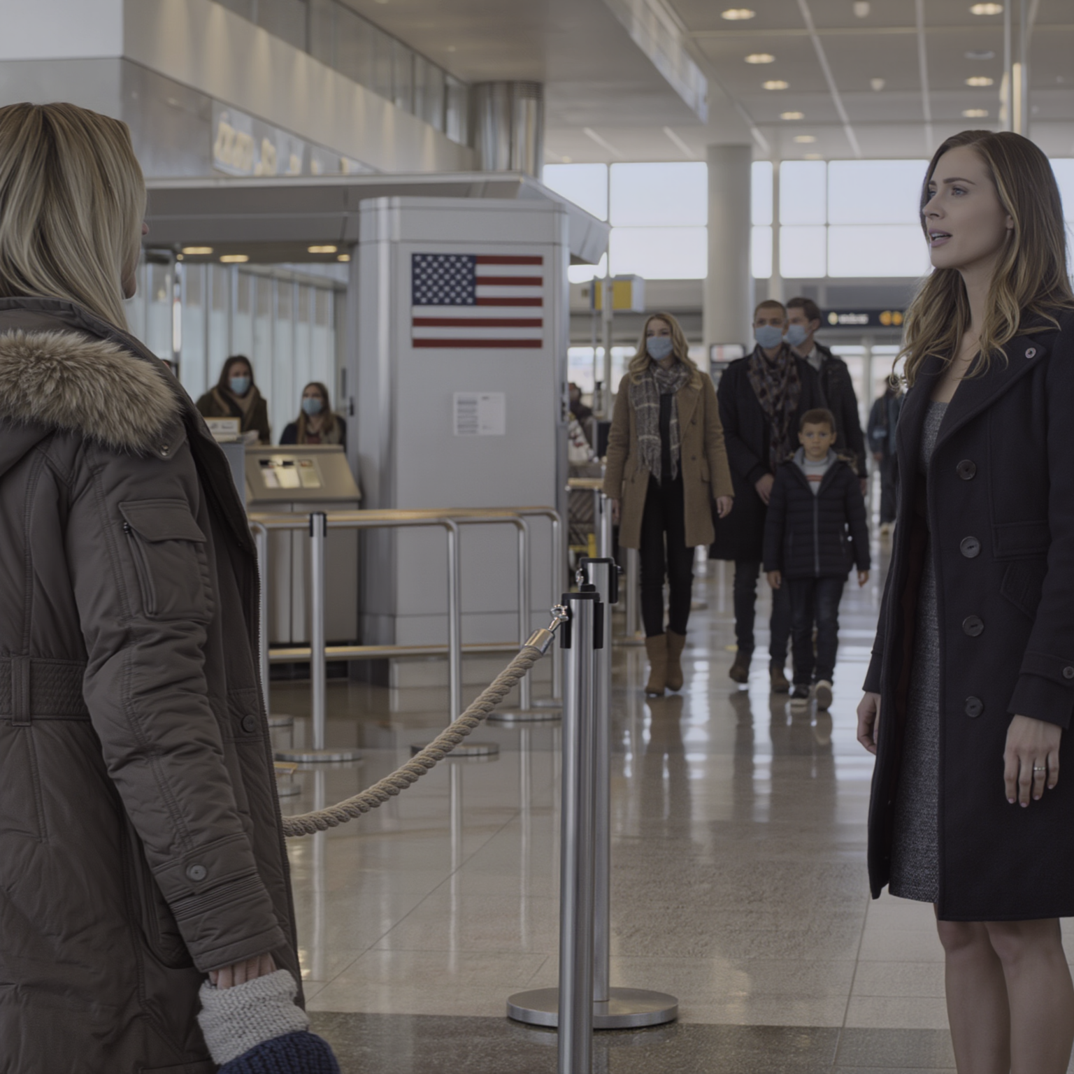 Lotnisko O’Hare przeżywało swój świąteczny okres. W holu unosił się zapach precli i cynamonu. Kubki Starbucksa kołysały się w dłoniach w rękawiczkach. Telewizor nad zatłoczonym barem odtwarzał w kółko noworoczne specjały, a głos Sinatry narastał i zanikał między komunikatami. Agent TSA z flagą na ramieniu uniósł dłoń i gestem zaprosił kolejną rodzinę do środka. Wszyscy wyglądali na podekscytowanych.